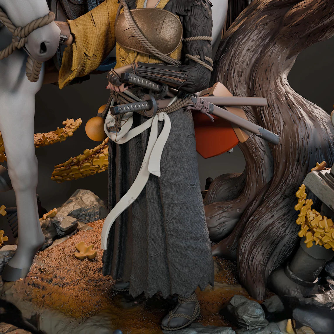 Diorama Samurai de Colecionador: Atsu - Inspirado em Ghost of Yotei