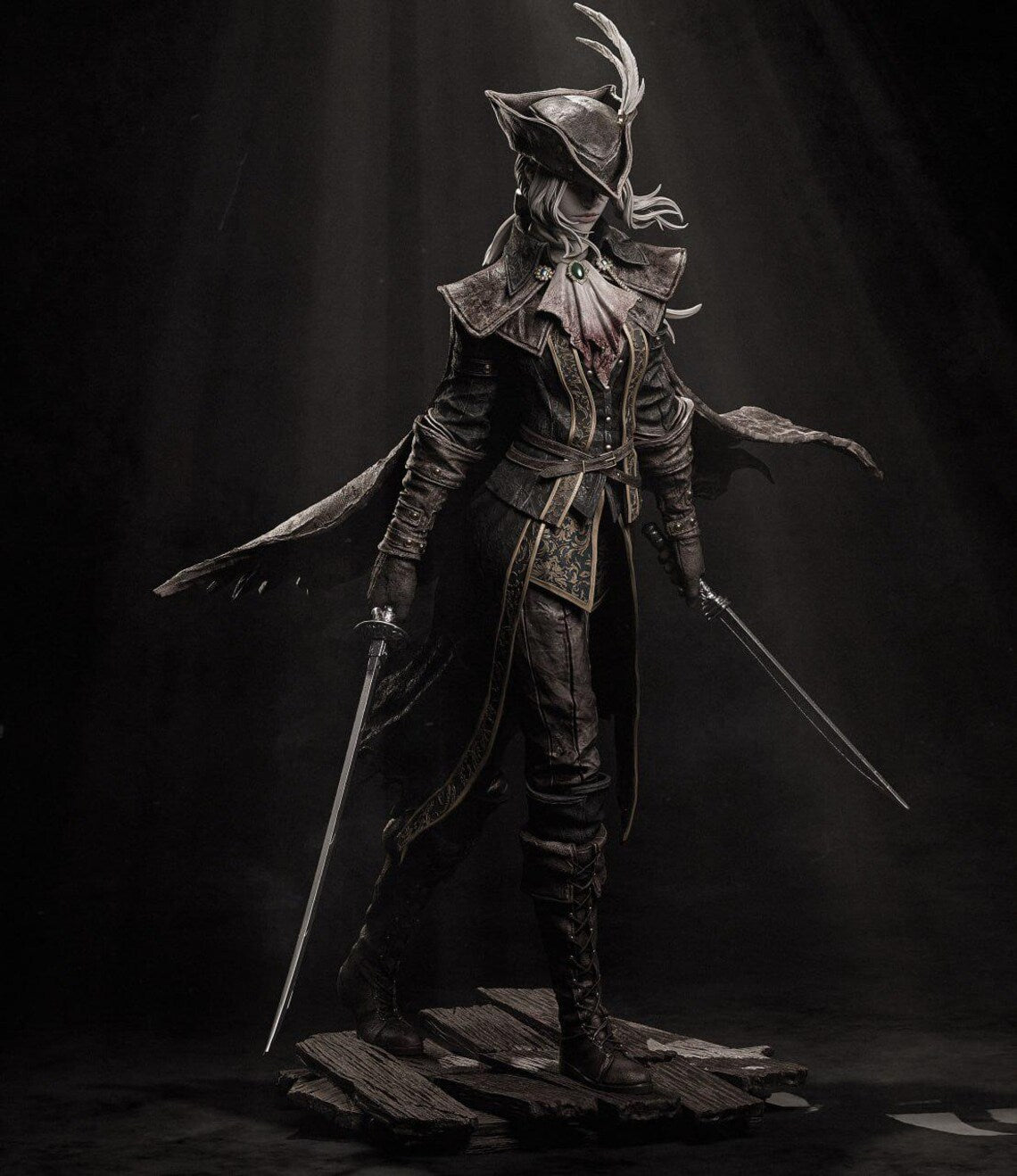 Sem pintura: Chega na sua forma bruta de resina branca esfumaçada, completamente sem primer e sem montagem. Ideal para amadores que gostam de pintar e finalizar as suas figuras.