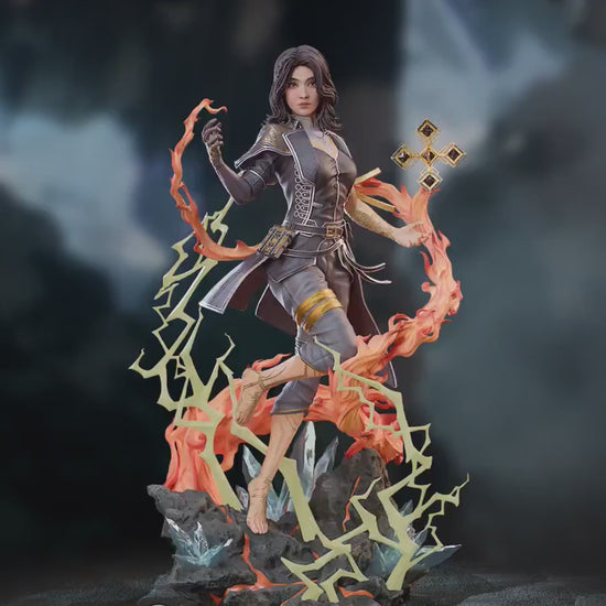 Apresentando a impressionante figura de Lune, uma das enigmáticas personagens principais do RPG tático Clair Obscur: Expedition 33. Magistralmente esculpida pela Neko, esta versão semirrealista captura a essência de Lune, refletindo a sua graça e aura misteriosa numa pose dinâmica que evoca o seu estilo de combate, sem perder um pingo de sofisticação.