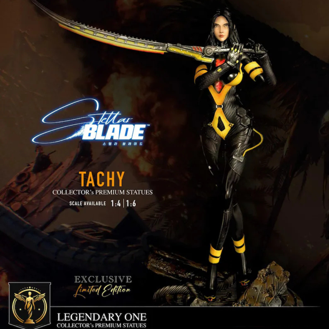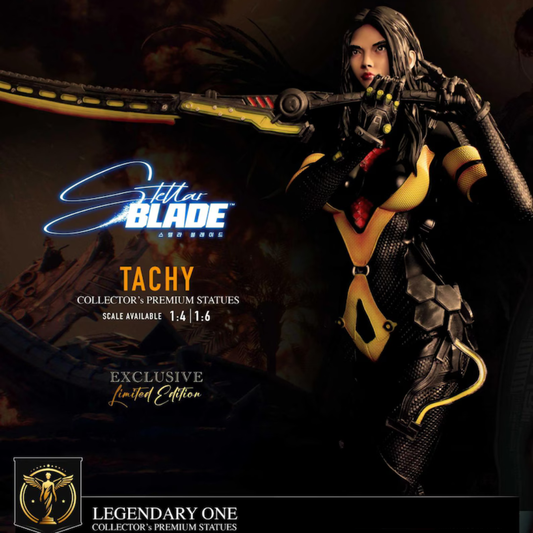 Leve para casa a figura Stellar Blade! A estátua colecionável TACHY representa a protagonista em toda a sua magnificência, vestindo o lendário Exclusive Black Body Suit, enriquecido por uma textura de carbono detalhada ao mais alto nível, que realça cada nuance e reflexo da sua armadura.