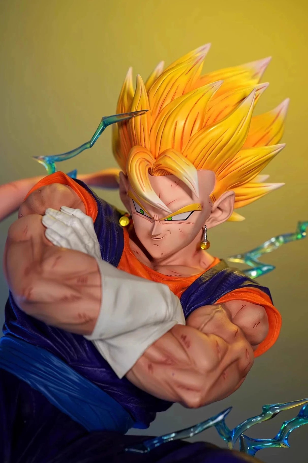 Figura de resina inspirada no confronto épico entre o Vegitto e o Super Buu do universo de Dragon Ball Z. Esculpida com grande atenção aos detalhes, esta peça exibe o lendário Saiyan na sua poderosa transformação enfrentando um dos vilões mais incríveis de sempre, numa pose impressionante, ideal para exibição. Perfeita para colecionadores e fãs de Dragon Ball.