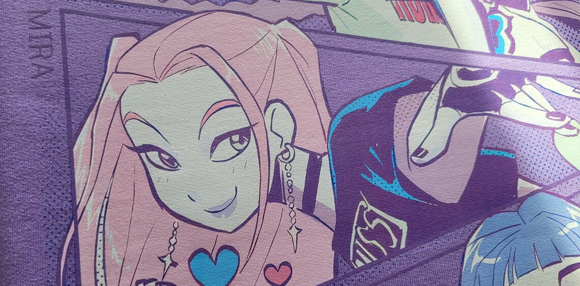 Hoodie Huntrix com dois lados, inspirado no sucesso KPop Demon Hunters.